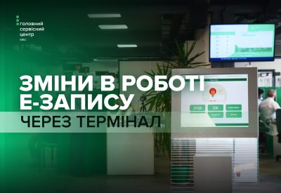 попередню реєстрацію на послугу через онлайн-сервіс або застосунок «Е-Запис», а також в терміналі безпосередньо в центрі МВС;